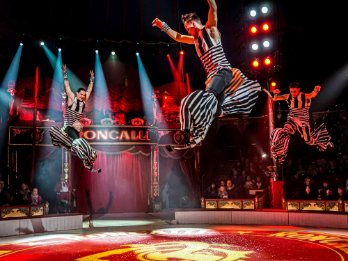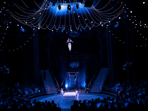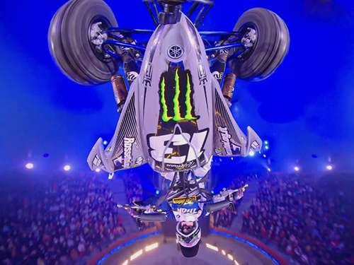 Le final du spectacle fait exploser l’adrénaline avec deux motos et un QUAD lancés dans les airs sous le chapiteau, au plus près du public.