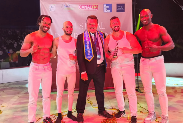 Fourmies de Cristal : Troupe acrobatique de Dhezou remis par BENOIT Joubert, comédien.