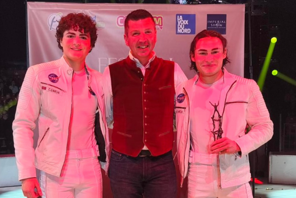 Prix du cirque dans l’univers : Antonio & Connor Garcia – Acrobatie remis par Martine Hamel, photographe des Arts du Cirque.